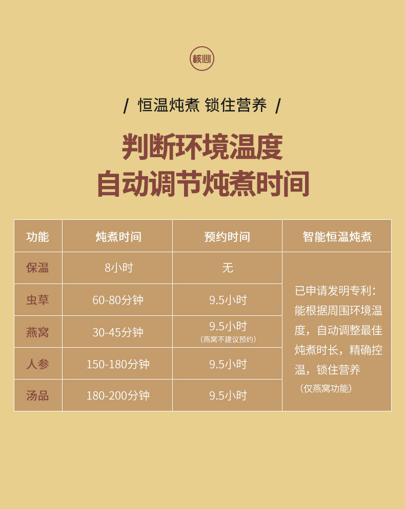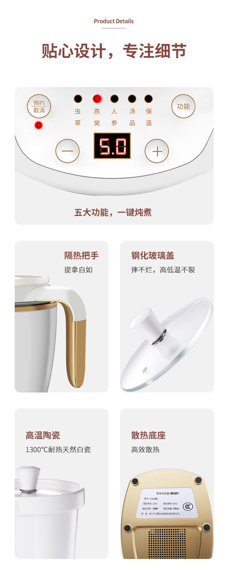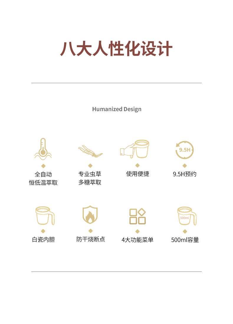 主要賣點:蟲草燕窩+多功能 精準溫控·蟲草營養不流失 燉盅與主機分離·使用方便